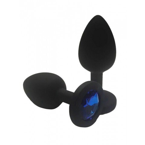 Анальная пробка из чёрного силикона с синим кристаллом (размер S)