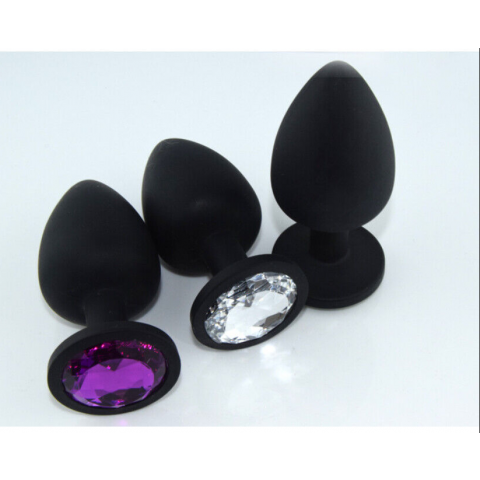 Анальная пробка из чёрного силикона с жёлтым кристаллом