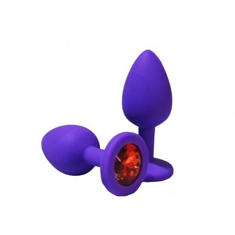 Анальная пробка из фиолетового силикона с красным кристаллом (размер S)