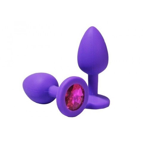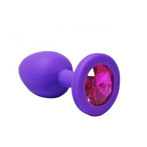 Анальная пробка из фиолетового силикона с розовым кристаллом (размер S)