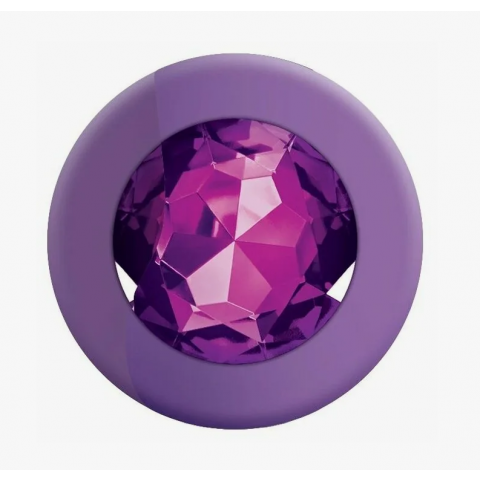 Анальная пробка из фиолетового силикона с розовым кристаллом