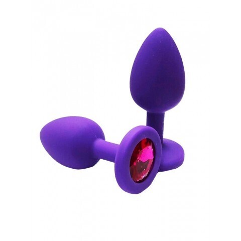 Анальная пробка из фиолетового силикона с темно-розовым кристаллом (размер S)