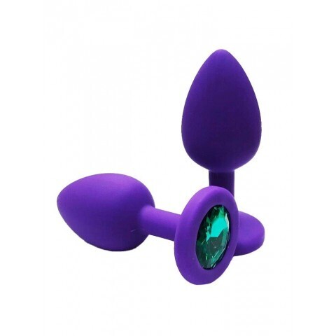 Анальная пробка из фиолетового силикона с тёмно-зелёным кристаллом (размер S)