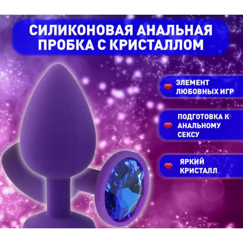 Анальная пробка из фиолетового силикона со светло-голубым кристаллом