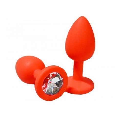 Анальная пробка из красного силикона с белым кристаллом (размер S)