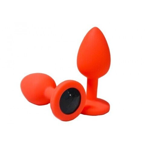 Анальная пробка из красного силикона с черным кристаллом (размер S)