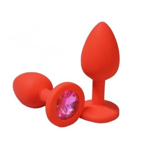 Анальная пробка из красного силикона с розовым кристаллом (размер S)