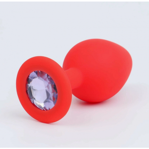 Анальная пробка из красного силикона со светло-фиолетовым кристаллом (размер S)