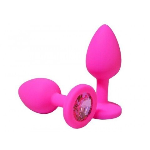 Анальная пробка из розового силикона с розовым кристаллом (размер S)