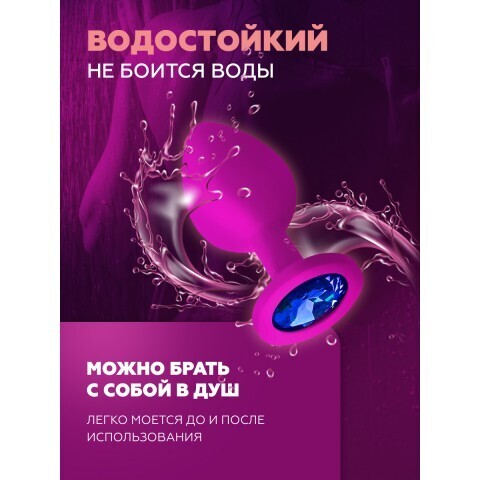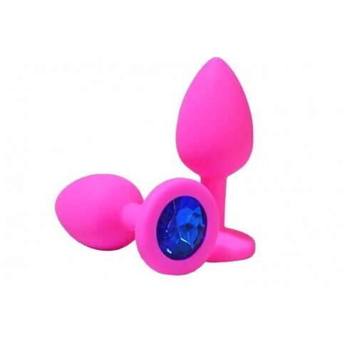 Анальная пробка из розового силикона с синим кристаллом, S