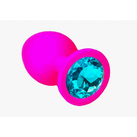 Анальная пробка из розового силикона со светло-голубым кристаллом, S