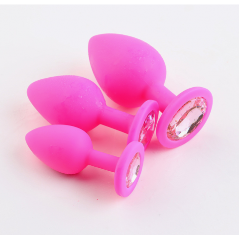 Анальная пробка из розового силикона со светло-розовым кристаллом