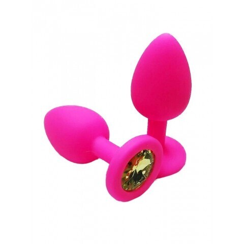 Анальная пробка из розового силикона со светло-жёлтым кристаллом (размер S)