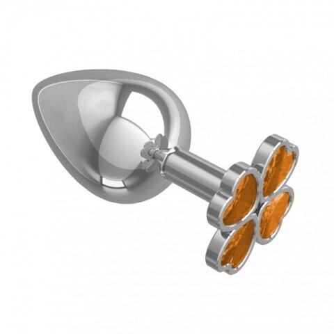 Анальная втулка Silver Клевер большая с оранжевым кристаллом