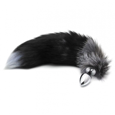 Анальный плаг с лисьим хвостом Black and White Fox Tail от Alive (M)