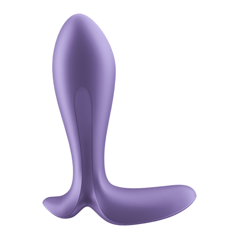 Satisfyer Intensity Plug — компактный виброплаг с управлением через приложение, рассчитанный на комфортную внешнюю стимуляцию в анальной зоне и аккуратные эксперименты с режимами. Форм-фактор сочетает плавно сужающийся кончик для бережного введения и расширяющуюся рабочую часть для ощущения наполнения, а Т-образное основание служит упором и остаётся снаружи для безопасной посадки. Корпус выполнен из гладкого силикона фиолетового цвета; тактильно он бархатистый и эластичный, легко принимает тепло тела и не вызывает дискомфорта при корректном подборе лубриканта.