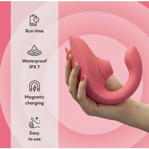 Он учел в себе анатомические особенности женского строения и имеет эргономичную гибкую форму, благодаря чему вы будете нежиться в чувственной истоме от одновременного воздействия с фееричным завершением. Пока основной отросток массажирует таинственную точку G глубокими вибрациями, воздушные волны, исходящие от технологии Pleasure Air обласкают клиторальную зону. Такая комбинация не оставит ни одну прекрасную даму равнодушной и заставит абсолютно каждую содрогаться от многогранных оргазмов снова и снова.