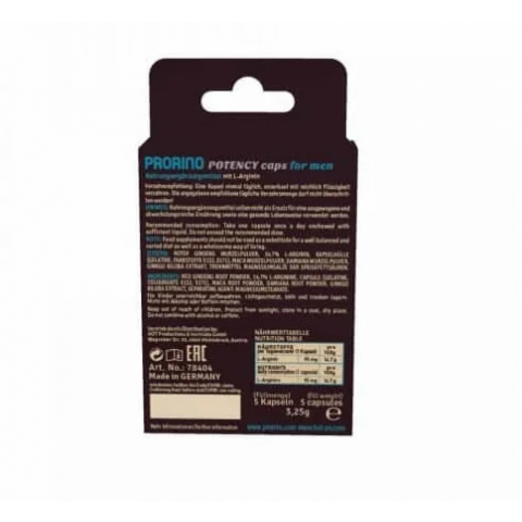 Биологически активная добавка к пище для мужчин Ero black line PRORINO Potency Caps 5 шт.