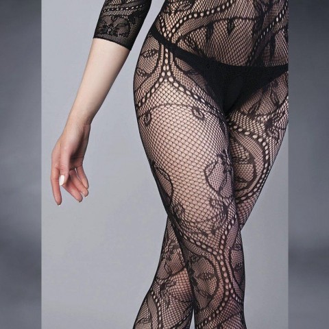 Эффектный боди-комбинезон с кружевным узором — универсальный элемент гардероба для создания соблазнительного образа. Модель выполнена из эластичного материала, мягко повторяющего контуры тела и подчёркивающего достоинства фигуры. Полупрозрачная сетчатая структура визуально вытягивает силуэт, а длинные рукава добавляют элегантности и изысканности. Благодаря своей гибкости и приятной текстуре, комбинезон обеспечивает комфорт при движении и идеально подходит как для романтических вечеров, так и для особых случаев.