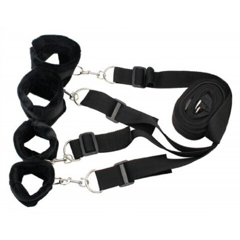 В комплекте: 2 пары манжет на руки и ноги, длинные ремни, маска.