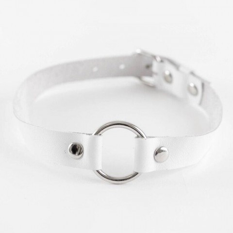 Чокер из натуральной кожи в белом цвете неплохо впишется в любую из вышеперечисленных ролей. Особенно в виде ошейника, так как имеется вставка металлического кольца. Высокое качество и стильный дизайн без лишних деталей.