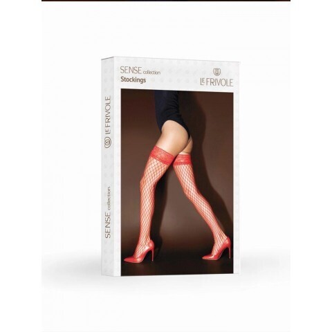 Яркие и смелые красные чулки Sense от LE FRIVOLE в крупную сетку — воплощение сексуальности и дерзости. Они придают образу характер и уверенность, подчёркивая каждое движение и изгиб ног.