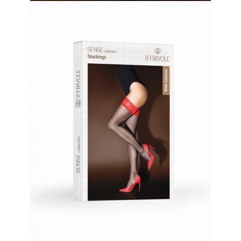 Чулки Sense от LE FRIVOLE созданы для тех, кто не боится быть в центре внимания. Тонкая полупрозрачная ткань (20 ден) изящно облегает ноги, подчёркивая их красоту, а ярко-красная кружевная резинка добавляет страсти и драматичности образу.