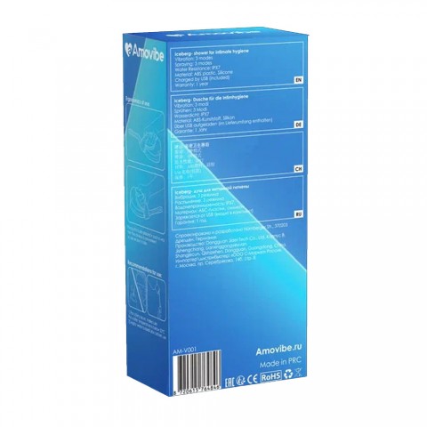 Amovibe Iceberg — инновационный душ для интимной гигиены, совмещающий автоматическую подачу воды и вибрационную насадку для более комфортного и деликатного очищения. Модель подходит для подготовки к интимным процедурам и отличается продуманной эргономикой: гибкая насадка с пятью отверстиями обеспечивает равномерное распыление, а колба объёмом 450 мл позволяет провести полное омовение без необходимости повторного наполнения.