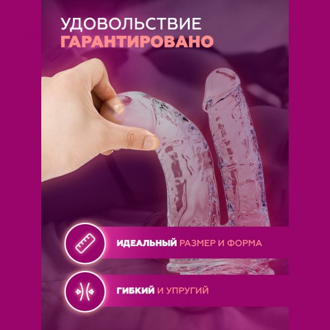 Выполнен дилдо из термопластичного эластомера в прозрачном цвете. Сразу два возбуждающих крепких ствола с венозным рельефом и ярко-выраженными головками заполнят ваши вагинальную и анальную дырочки для потрясающе острых ощущений, доводящих до дрожи в теле. На его основании имеется надежная присоска, благодаря которой процесс шалостей может происходить без участия рук.