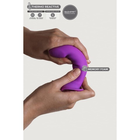 Дилдо с двойным покрытием выполнен из смеси гипоаллергенных силекспана и силикона в лиловом цвете. Ключевой его особенностью выступают термореактивные свойства, благодаря чему он меняет плотность под воздействием температуры. Если вы хотите получить мягкую, гибкую и эластичную форму для нежных стимуляций, просто нагрейте его в микроволновой печи или горячей воде до 30 секунд. В случае охлаждения же он примет более жёсткое положение, которое придётся по вкусу любителям острых ощущений. На основании имеется прочная присоска, позволяющая закрепить изделие на плоской поверхности для удовольствия без участия рук.