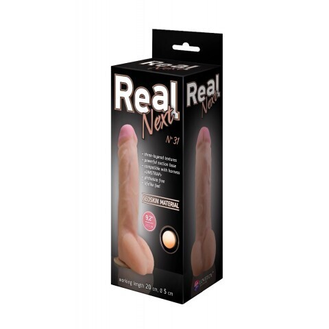 Фаллоимитатор REAL Next № 31 сочетает в себе протезную конструкцию на полужестком каркасе и покрытие из neoskin — киберкожа нового поколения, имитирующая натуральную плоть. Ярко выраженная головка, упругий ствол с рельефными венками и массажная мошонка создают многослойную стимуляцию, а надёжная присоска на основании обеспечивает hands-free использование.