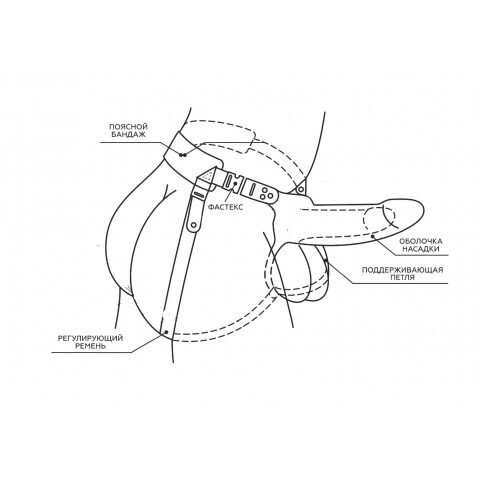 Он имеет четыре кожаных ремешка для закрепления на теле, два из которых фиксируются на мошонку или прикрепляются к полукруглой полимерной петле, которая выполняет функцию комфортной фиксации вокруг яичек. Пластмассовые регуляторы позволяют расширить диапазон регулировки в талии до 180 см. Благодаря небольшому бандажу на пояснице вам обеспечено удобство при носке, а за счет двухслойных ремешков вы сможете регулировать размер. В случае достижения эрекции нужной величины, изделие можно снять и продолжить половой акт без него.