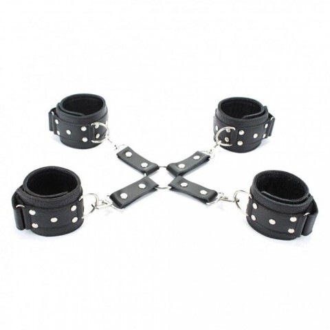 Выполнен эротический аксессуар из высококачественной натуральной кожи в черном цвете, в виде оков для рук и ног, фиксируемых с помощью липучки и соединенных между собой металлическими карабинами. Они позволят вам обездвижить свою партнершу, сковав конечности за спиной и открыв полный доступ к её попке и вагине для "причинения" блаженного удовольствия. Станьте её личным Господином и нанесите ей сладостное интимное наслаждение, от которого вы оба будете чувствовать неудержимое возбуждение.