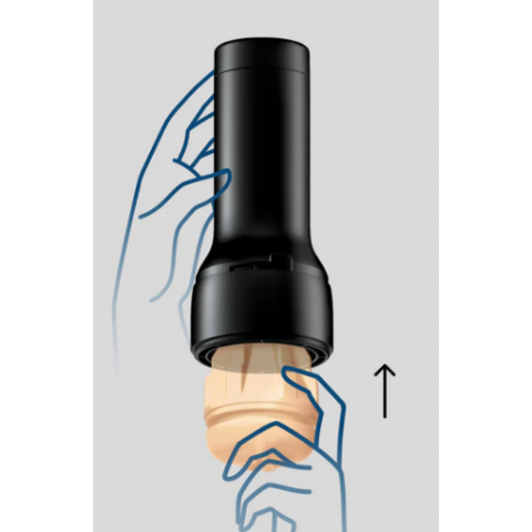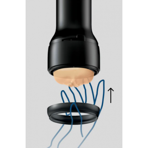 Вставьте выбранный рукав в корпус футляра до упора, закрепите его фиксирующим кольцом и зафиксируйте положение. Установите футляр в устройство Keon до щелчка. После сеанса извлеките рукав, промойте и высушите.