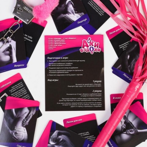 Игра для двоих "Ахи вздохи. Безумная страсть" 3 в 1 (64 карты, плетка, наручники)