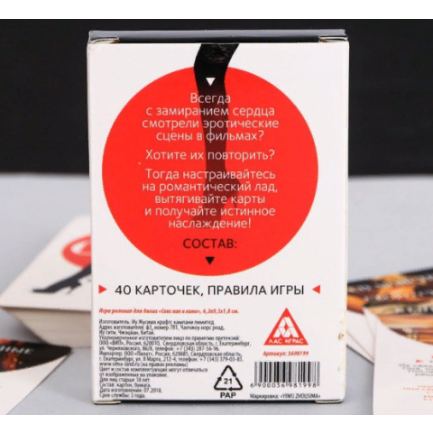 Всегда с замиранием сердца смотрели эротические сцены в фильмах? Тогда секс-игра для двоих «Секс как в кино» создана специально для того, чтобы вы почувствовали себя героями фильма. Настраивайтесь на романтический лад, вытягивайте карточки и отправляйтесь в страну истинного наслаждения!