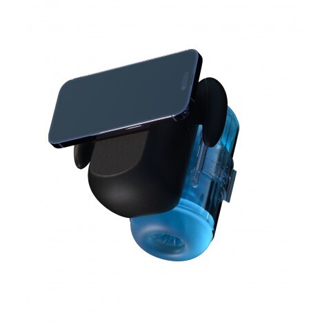 Робот-мастурбатор Black Knight от Amovibe с функциями пенетрации, вибрации и нагрева. 3D TPE-рукав, магнитный держатель для телефона, водозащита IPX6. Размеры 15,9×15,4×13,7 см.