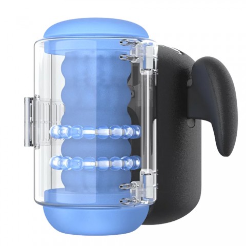 Мастурбатор оснащён мягким 3D TPE-рукавом, менее пористым по структуре, что дарит более реалистичное тактильное ощущение. Восемь режимов толчков и дополнительная стимуляция движущимися бусинами воздействуют на всю поверхность пениса, усиливая удовольствие. Удобные боковые ручки и встроенный магнитный держатель для телефона позволяют полностью сосредоточиться на процессе.