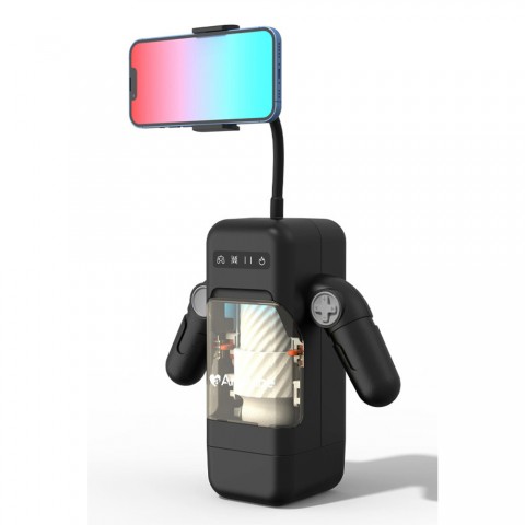 Электронный мастурбатор с эргономичным корпусом и акцентом на управляемость. Боковые ручки поворачиваются на 45°, а блок кнопок выполнен в стиле геймпада — это помогает зафиксировать удобный хват и сохранять контроль в разных положениях. Внутри установлен мягкий рукав из 3D TPE с объёмной текстурой. Реализована комбинация двух приводов: доступны 10 режимов возвратно-поступательных движений и 10 режимов вибрации с раздельным управлением. Предусмотрен подогрев канала до 42 °C примерно за 5 минут. Для удобства просмотра контента предусмотрен съёмный держатель для смартфона. Степень защищённости корпуса — IPX4. Питание — от встроенного аккумулятора; полный цикл зарядки занимает около 3 часов и обеспечивает до 90 минут непрерывной работы.