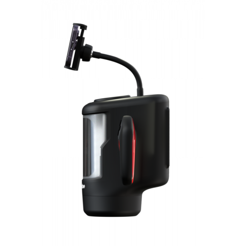 Управление осуществляется с помощью экрана — это удобно и понятно, даже если вы используете устройство в разных позах. Эргономичные ручки корпуса поворачиваются на 45 градусов, подстраиваясь под анатомию и предпочтения. А съёмный держатель для смартфона позволяет синхронизировать с визуальным контентом и ещё глубже погружаться в процесс.