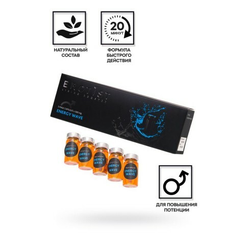 Пищевая добавка на основе растительных компонентов для мужчин Energy Wave, направленная на продление полового акта, улучшение качества секса, устранение нейрогенной (психологической) причины преждевременной эякуляции, повышение либидо, улучшение потенции и сперматогенеза, а также защиту от негативного влияния стресса. Многокомпонентный препарат, в основе которого использована мицеллярная форма, представляет собой структурированную среду активатора на основе эссенциальных компонентов, источников антиоксидантного комплекса и бустер-капсулы, обогащенные гидрофильной формулой растительных биологически активных веществ и усиленная цинком и комплексом витаминов.