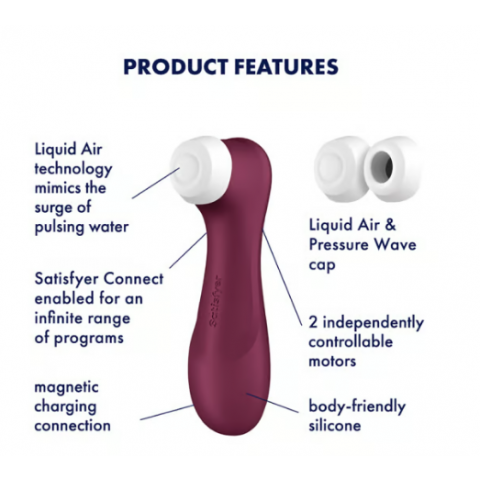 Девайс перезаряжаем и выполнен из бархатистого гипоаллергенного силикона в бордовом цвете. Оснащен двумя независимыми друг от друга моторами, оказывающими упоительное воздействие посредством 12 режимов вибрации и 11 режимов воздушной стимуляции. Ваш интимный досуг наполнится невероятным блаженством благодаря уникальной технологии Liquid Air, имитирующей прилив пульсирующей воды, что просто не может не взволновать ваши разум и тело. Бесшумный режим никому не расскажет о ваших шалостях, а водонепроницаемый корпус позволит вам насладиться умопомрачительными оргазмами в ванне или душе. Но самое главное - это возможность синхронизировать его с мобильным приложением Satisfyer Connect APP, которое открывает множество дополнительных функций. Создавайте свои собственные паттерны вибрации, подключайтесь к учетной записи Spotify и побалуйтесь вибрацией в такт музыке или же передайте контроль над вашими ощущениями партнеру, даже если вас разделяют сотни тысяч километров.