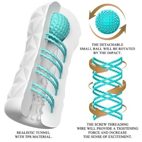 Pretty Love Victoria Cecil — компактный мастурбатор из термопластичной резины (ТПР) с рельефным внутренним каналом и дополнительными элементами стимуляции. Конструкция включает спиральный участок, который при поступательных движениях способствует скручиванию корпуса, а также верхний встроенный шарик для точечного воздействия. Такое сочетание формирует два выраженных сценария тактильности: равномерный массаж за счёт ребристого тоннеля и локальную стимуляцию в зоне шарика. Мягкий и эластичный материал комфортно прилегает к коже; изделие рассчитано на многоразовое использование. Габариты: длина около 15 см, диаметр около 6,3 см.