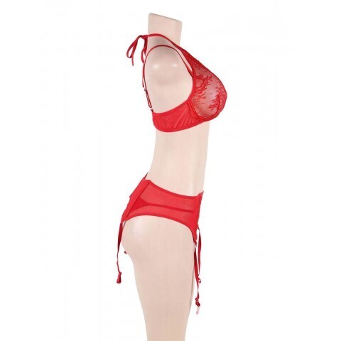 Комплект белья красный: бра, стринги и пояс с ремешками (размер M-L)