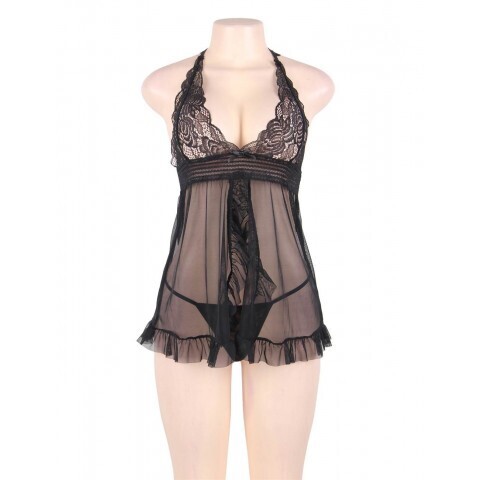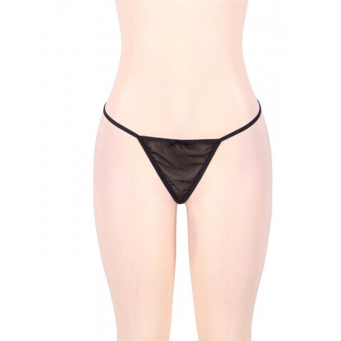 Комплект: черная прозрачная сорочка и стринги (размер XS-S)