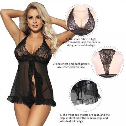 Комплект: черная прозрачная сорочка и стринги - инструмент соблазнения и способ подчеркнуть ваши достоинства и готовность. Такой костюм подарит эмоции и освежит желания, он отлично подойдет для разнообразия гардероба и будет уместен, когда вы хотите окунуться в мир блаженства. Воздушный, он приоткрывает ваши тайны, элегантно садится по фигуре и удобно регулируется, чтобы быть не заметным, когда придет время. Стринги идут в комплекте, а множество аксессуаров и средств для возбуждения подарят вам вечер полный праздника загадок и открытий.