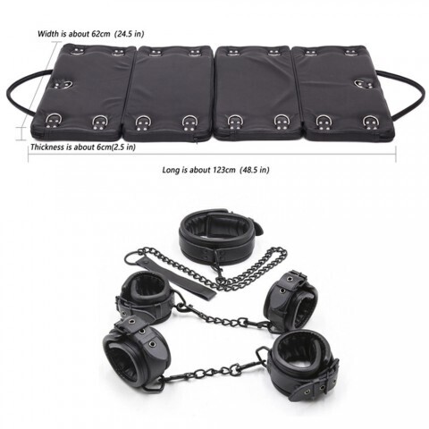 Раскройте доску, зафиксируйте её в устойчивом положении. Прикрепите наручники и фиксаторы к металлическим кольцам. Перед началом убедитесь, что фиксация не вызывает дискомфорта. Всегда соблюдайте правила безопасности и доверия между партнёрами.