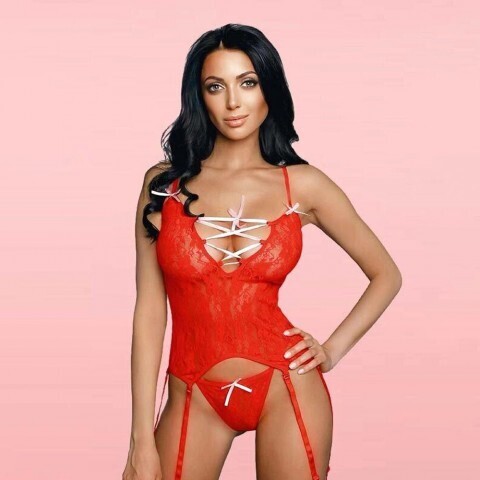 Комплект выполнен в насыщенно-красном цвете и дополнен подвязками для чулок, придающими образу яркость и завершённость. Подходит для создания особенного настроения, ролевых сценариев или фотосессий.