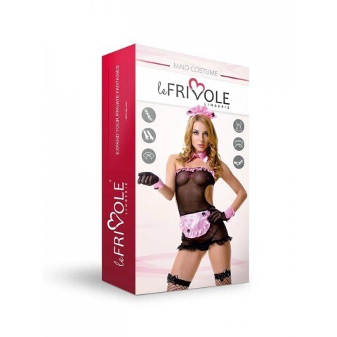 Костюм горничной — готовый образ для ролевых вечеров и тематических фотосессий, в котором сочетаются лёгкая полупрозрачная ткань и аккуратные декоративные детали. Базовый силуэт подчёркивает линию талии и мягко прилегает по фигуре, а контрастные розовые рюши в зоне декольте создают выразительный акцент. В комплект входят элементы, позволяющие быстро собрать цельный look: головной убор, накладной воротник и манжеты поддерживают «униформенный» стиль, перчатки завершат композицию, а чулки в сеточку добавят структурный акцент на ногах. Благодаря эластичности материала костюм комфортно садится на размер S/M и сохраняет форму в движении.