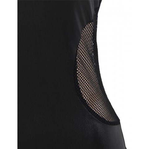Лёгкое платье из чёрной полупрозрачной сетки подчёркивает силуэт и создаёт аккуратный акцент на линии груди за счёт ремешков. Прозрачные боковые вставки визуально утончают талию, а продуманный крой помогает собрать цельный образ для романтического вечера или эффектной фотосессии.